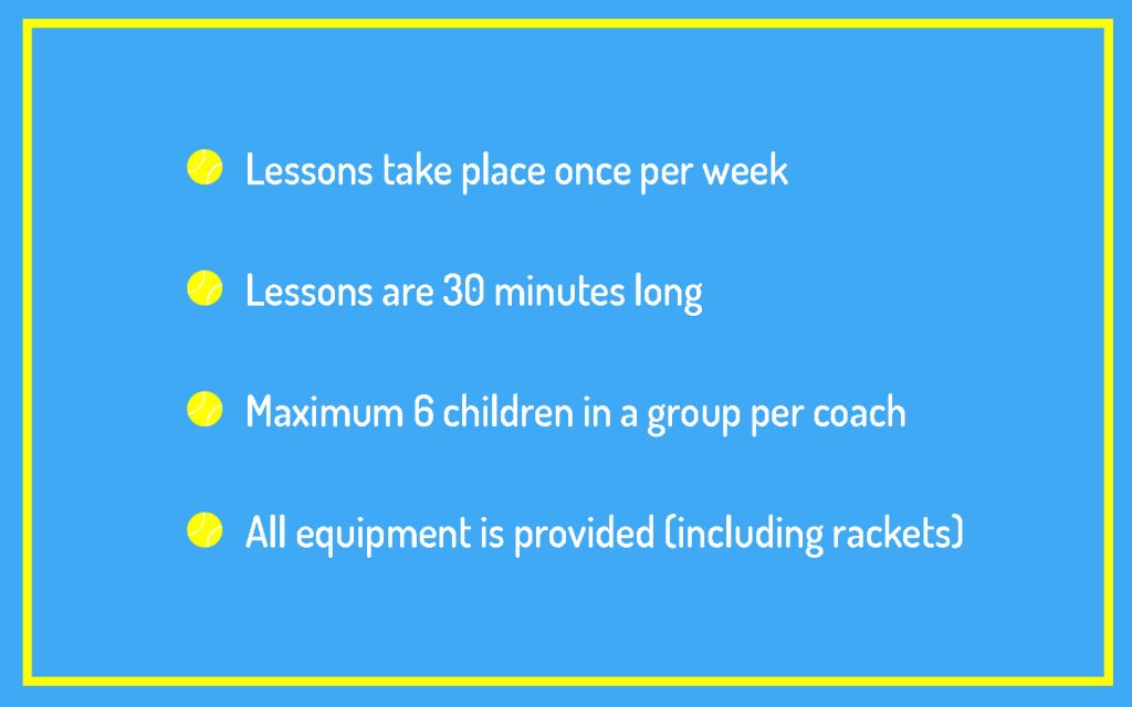 A typical 30min class of tennis involves an intense cardiovascular workout, in which kids can burn hundreds of calories. The game is so much fun that kids won’t even know they are doing something good for their bodies.